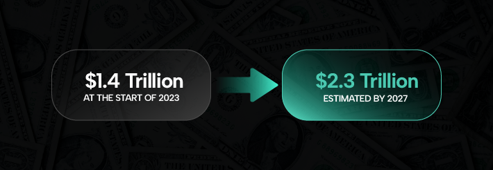 Tokenized private credit involves the digitization of private debt instruments, such as loans, bonds, and other credit assets, into blockchain-based tokens. These tokens represent ownership or fractional ownership of the underlying assets which enable retail investors to easily access this previously illiquid instrument. The market for tokenized private credit, while still relatively small, is growing rapidly. It is a fraction of the broader private credit market, which was estimated to be around $1.4 trillion at the start of 2023 and is projected to reach $2.3 trillion by 2027 (1)